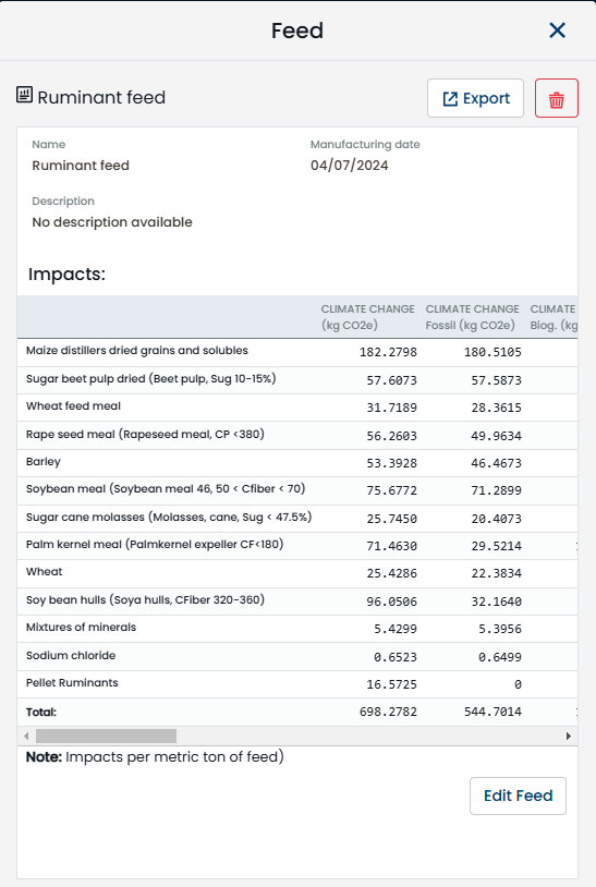 Calculate the environmental impact values of the feed ingredients that you use in your feed mill. You can compare the values associated with different ingredients or different sources of the same raw material.