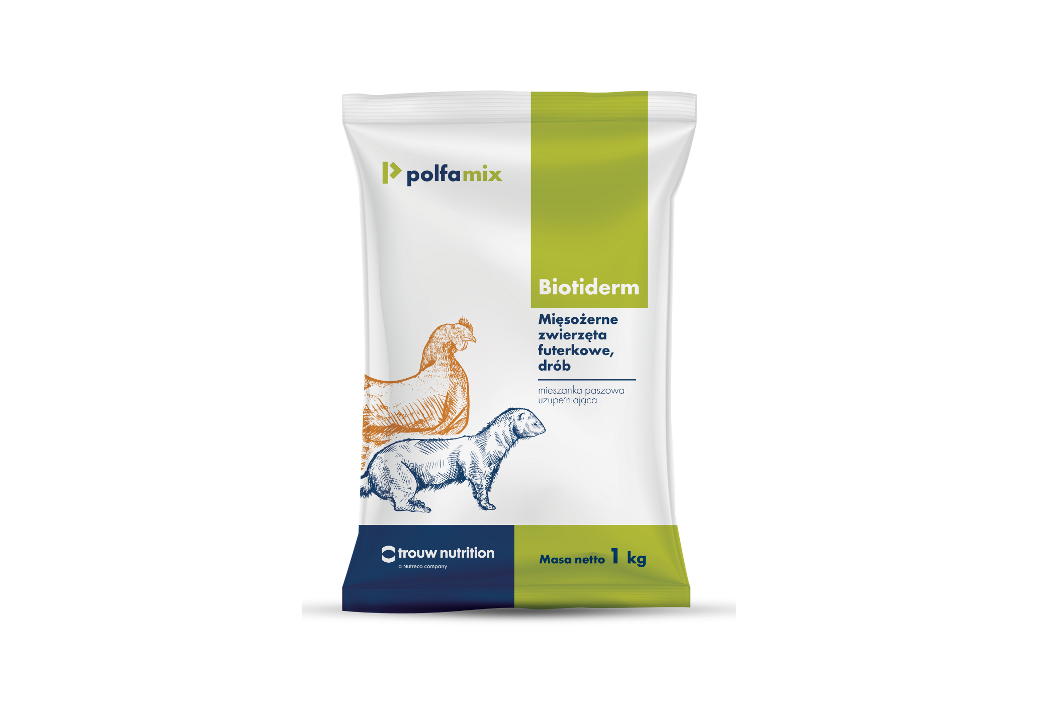 Polfamix Biotiderm to dodatek zawierający biotynę (witaminę H), przeznaczony dla drobiu i mięsożernych zwierząt futerkowych. Biotyna w istotny sposób wpływa na poprawę jakości okrywy włosowej zwierząt futerkowych, upierzenia ptaków oraz na wylęgowość piskląt.