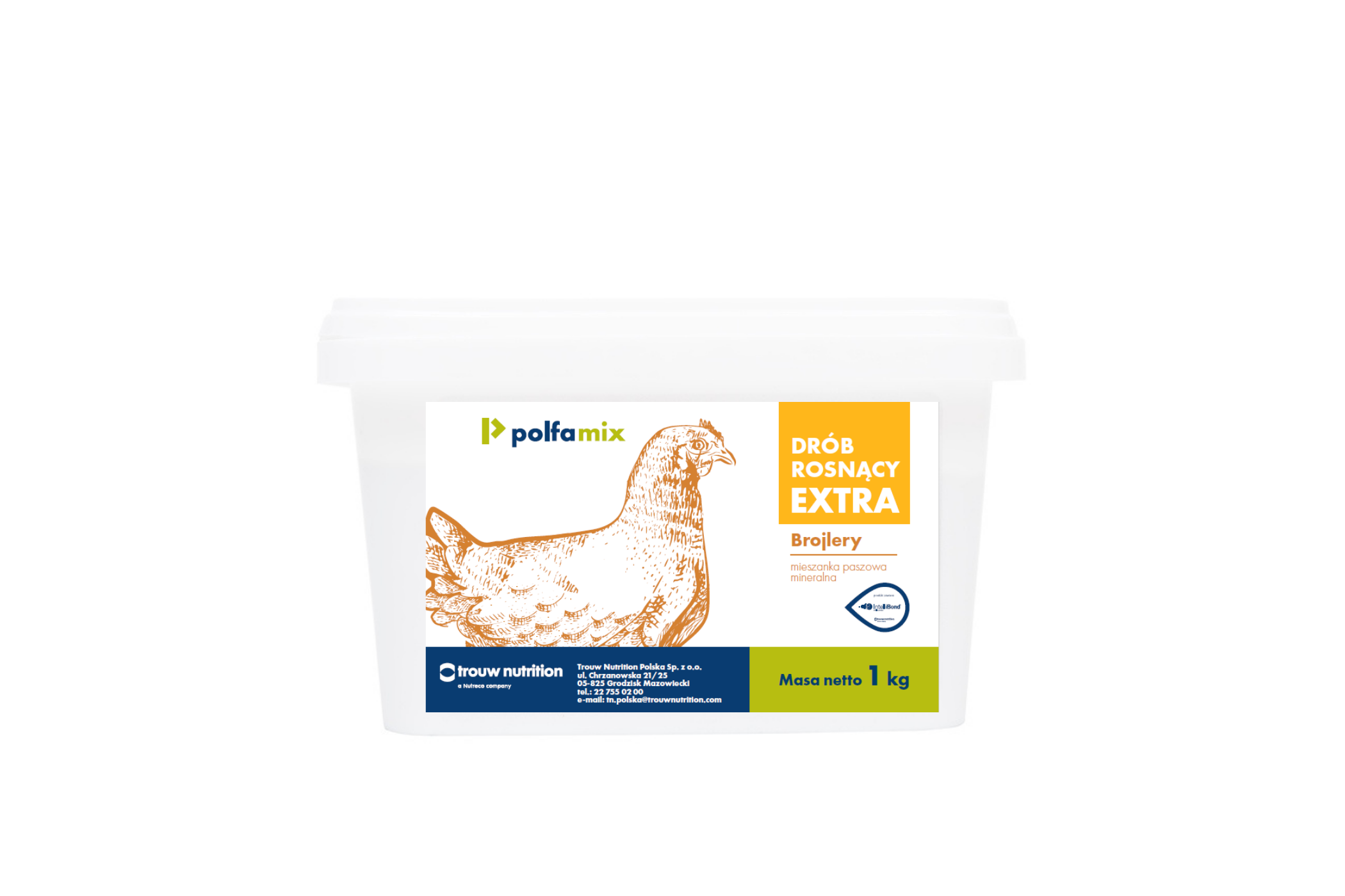 Polfamix Drób Rosnący Extra to mieszanka paszowa mineralna przeznaczona dla wszystkich gatunków drobiu domowego (brojlerów kurzych i indyczych, kaczek, gęsi oraz dla młodych kurek nieśnych w okresie wychowu) w okresie jego wzrostu i rozwoju.