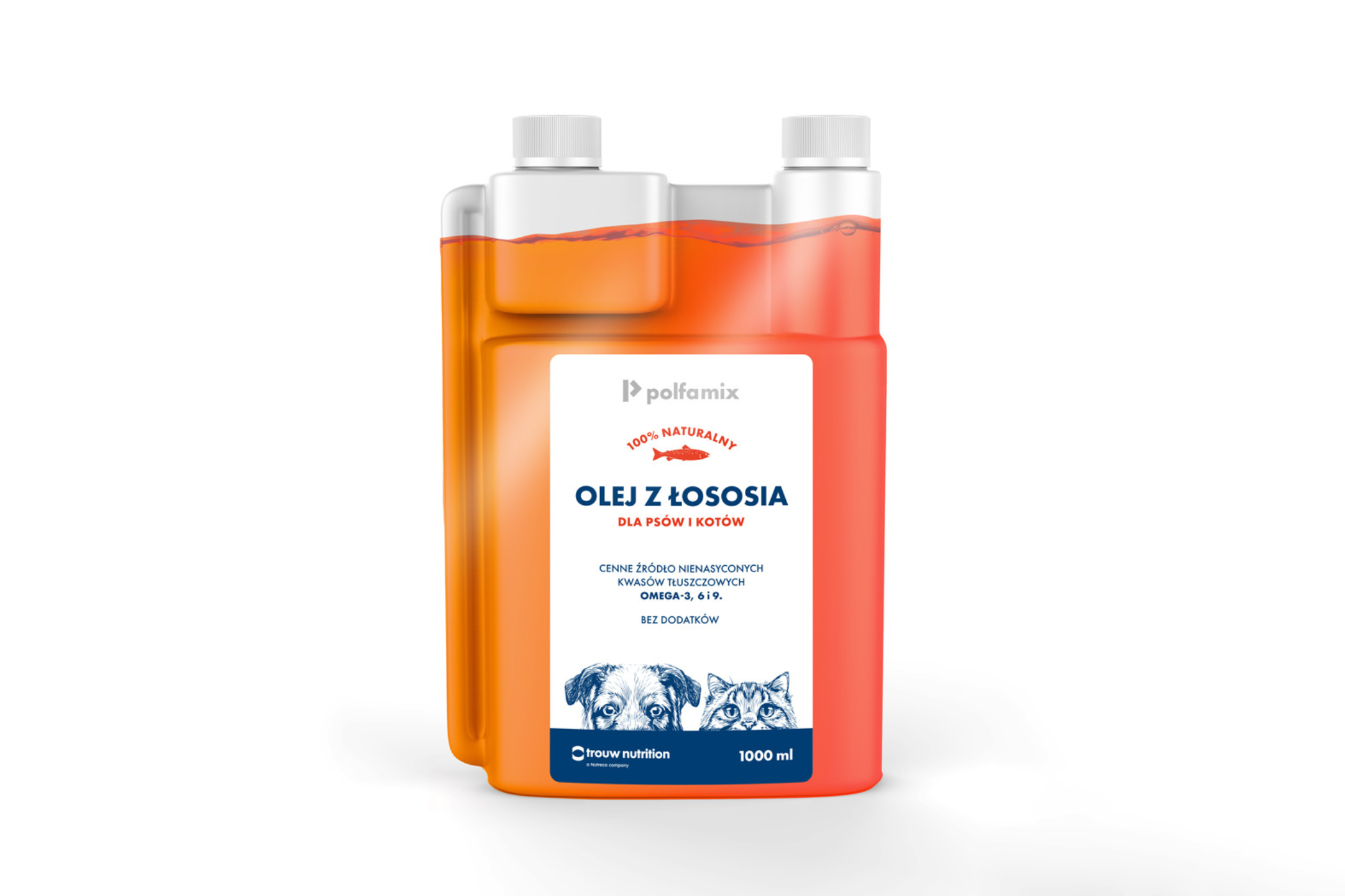 Produkt dla psów i kotów – w 100% naturalny OLEJ Z ŁOSOSIA. Pozyskiwany ze świeżych, nieprzetworzonych ryb, stanowi cenne źródło nienasyconych kwasów tłuszczowych, w tym Omega-3, 6 i 9, które korzystnie wpływają na ogólną zdrowotność psów i kotów.