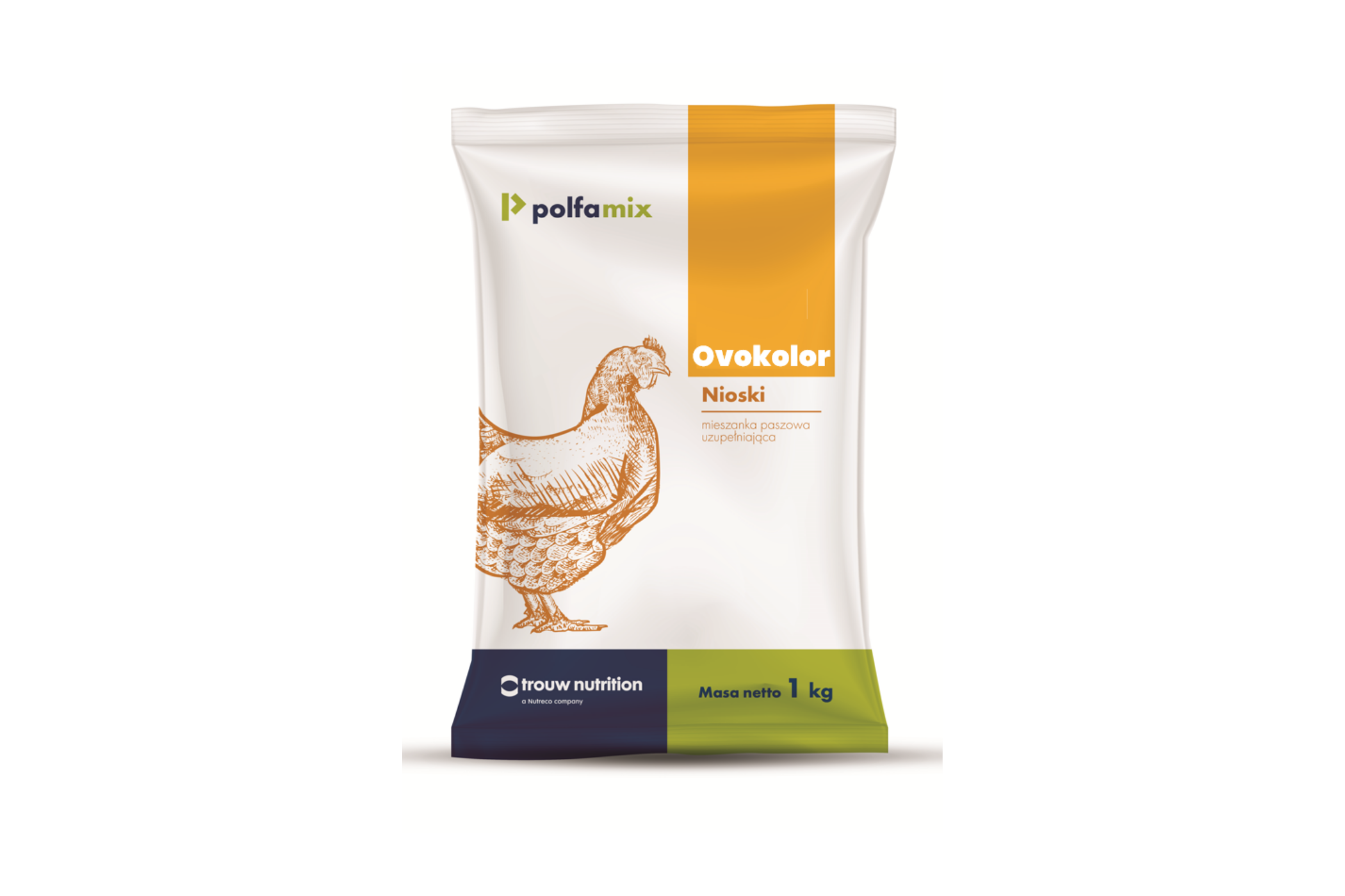 Produkt przeznaczony jest do uzupełniania mieszanek przemysłowych dla niosek stad towarowych. Aktywność zastosowanych barwników umożliwia obróbkę termiczną w technologii produkcji mieszanek paszowych.