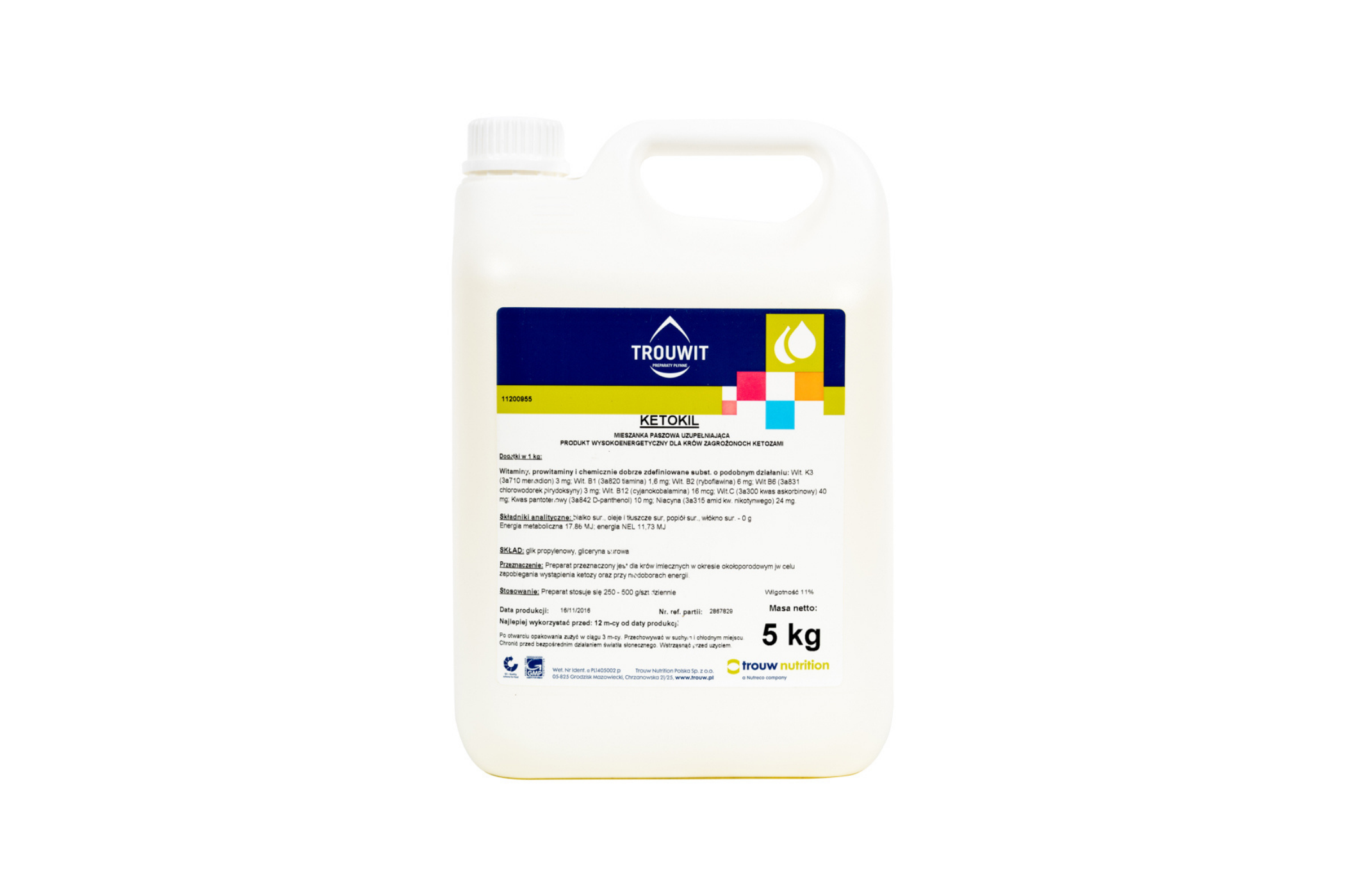 Skoncentrowana, wysokoenergetyczna mieszanka dietetyczna przeznaczona dla krów i jałówek zagrożonych ketozami w okresie okołoporodowym. Ketokil chroni przed wystąpieniem ketozy lub minimalizuje jej skutki. Chroni wątrobę przed otłuszczeniem (wysokoenergetyczny glikol propylenowy), aktywizuje przemiany energetyczne (witaminy z grupy B), ogranicza poziom wolnych kwasów tłuszczowych we krwi, działając osłonowo na wątrobę (niacyna).